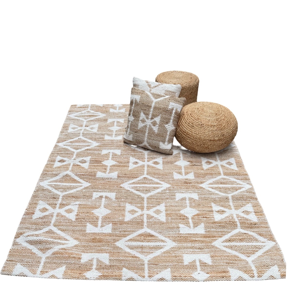 This rug is woven from jute and white chenille in an ethnic graphic design. The rug feels nice and comfortable, also nice to just sit on or walk on with bare feet. The rug fits perfectly in the summer atmosphere, in a beach house or in the bedroom styled by the bed. Combine it nicely with bamboo or rattan, white linen and beautiful mood lighting and you will soon have the fine beach or Ibiza atmosphere in your home!