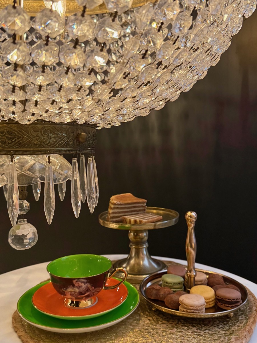 This tray is made of metal in copper shade, the size of the pleatu is round ø17 cm hg 15 cm. Beautiful for presenting chocolates, patisserie, at a high tea, dessert or luxury coffee service. Not suitable for microwave, not suitable for dishwasher, clean with warm water and a soft cloth.