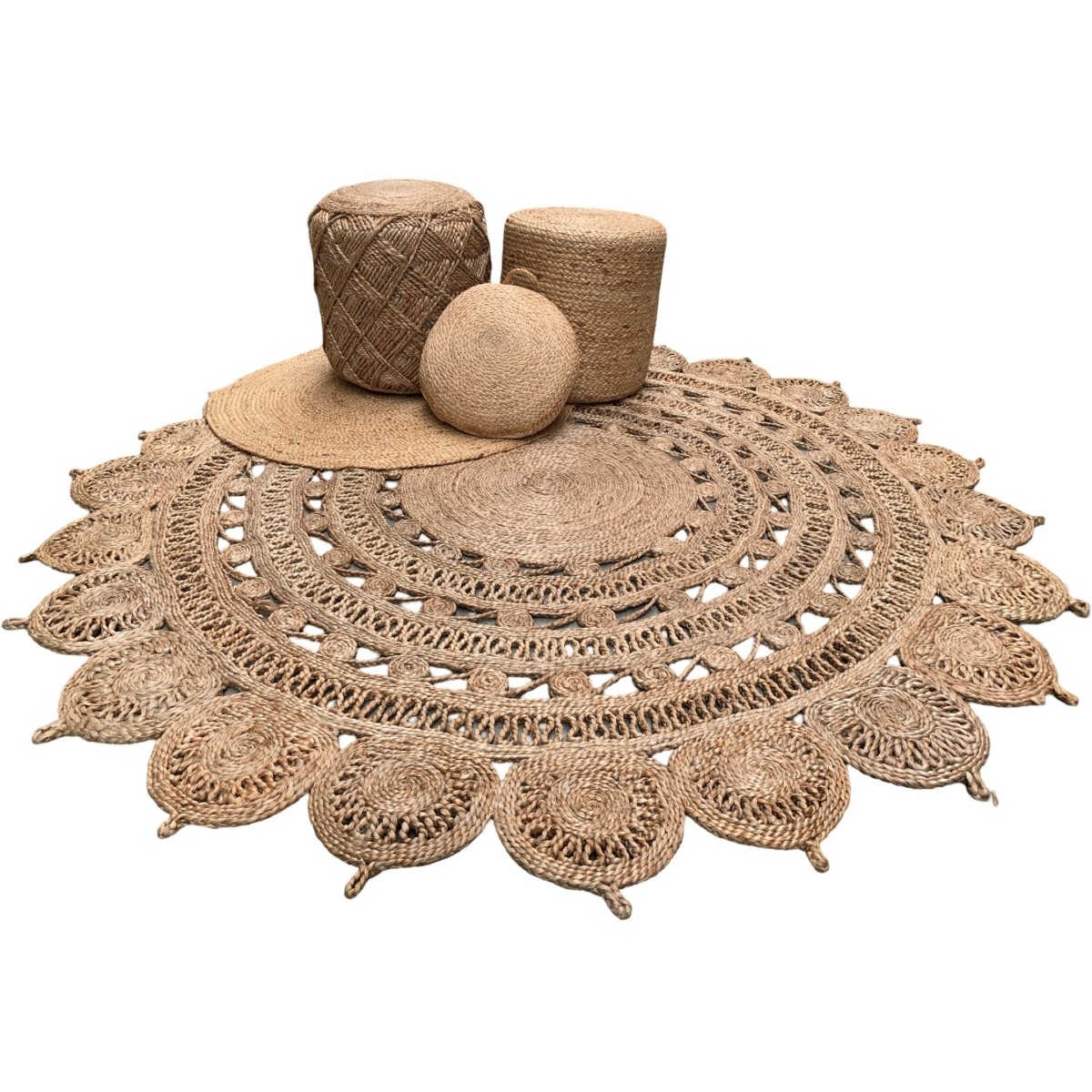 Poef jute gevlochten rond naturel ø 40 hg 40 cm
