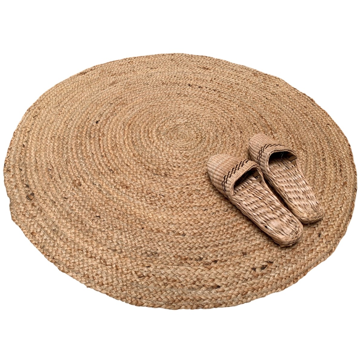 Het vloerkleed is mooi geweven van plantaardige vezels tot jute. De natuurlijke look en het ronde model van het kleed, maken dat het vloerkleed helemaal de eyecatcher van nu is in het interieur! Het jute vloerkleed geeft een natuurlijk, botanisch of retro accent in je huis. Door de naturel kleurstelling is jute een ideale basis voor het interieur waar een divers kleurenpalet perfect mee te combineren is. Om de botanische sfeer in huis te creeren, is jute een mooie basis om te combineren met een sfeer van grootbladerige planten of cactussen in huis. Tip: Jute zelf houdt echter niet van vocht en/of vochtige ruimtes, een aspect om bij de styling rekening mee te houden. Dat mag de pret niet drukken, genoeg mooie andere stylingsmogelijkheden met jute, van slaapkamer, huiskamer tot serre. Om het plaatje in de natuurlijke look compleet te maken, zijn er ook jute poefs, manden en kussens in de collectie.