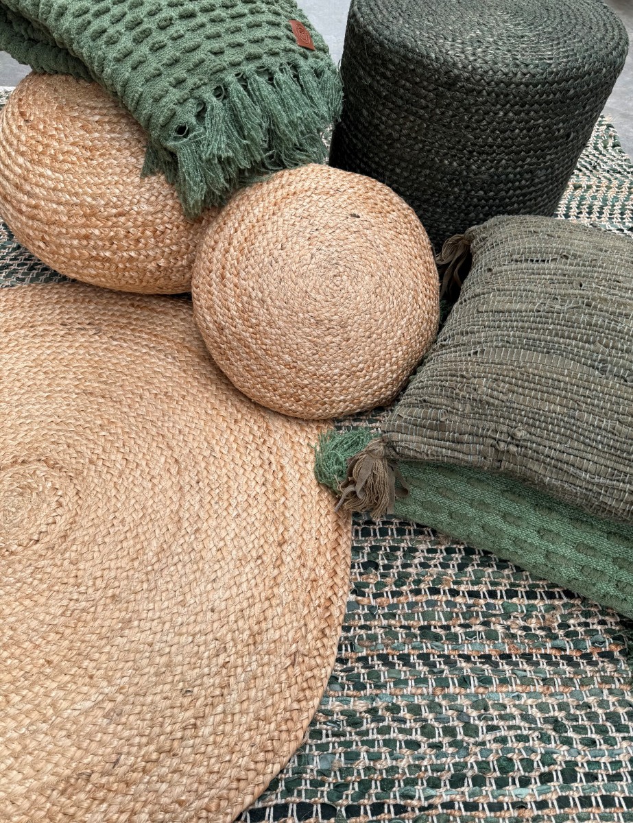 Het vloerkleed is mooi geweven van plantaardige vezels tot jute. Het jute vloerkleed geeft een natuurlijk, landelijk of botanisch accent in je huis. Door de kleurstelling naturel en bosgroen is jute een ideale basis voor het interieur waar een divers kleurenpalet perfect mee te combineren is. Het vloerkleed is prettig in gebruik en voelt - in tegenstelling wat vaak gedacht wordt bij jute, dat het erg hard zou zijn - is dat niet het geval. Ook op blote voeten voelt het kleed prettig aan. De look & feel van het kleed is prettig en ongecompliceerd waardoor het fijn toepasbaar is in de huiskamer of slaapkamer van de woning, en/of een vakantie- of recreatiewoning. Een allermans vriend als ideale basis om mee te combineren.