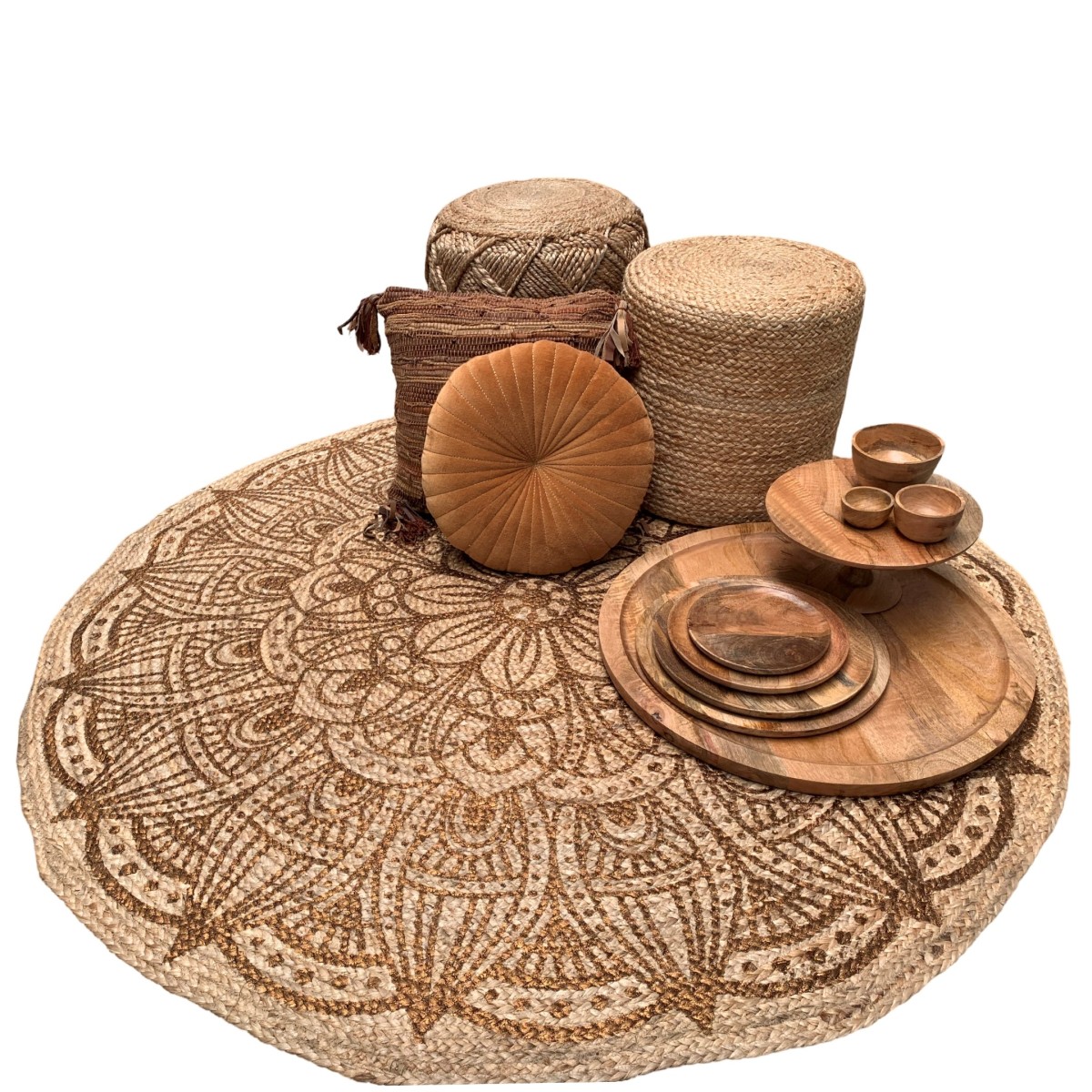 Vloerkleed jute gevlochten rond ø 120cm print koper mandala lotus