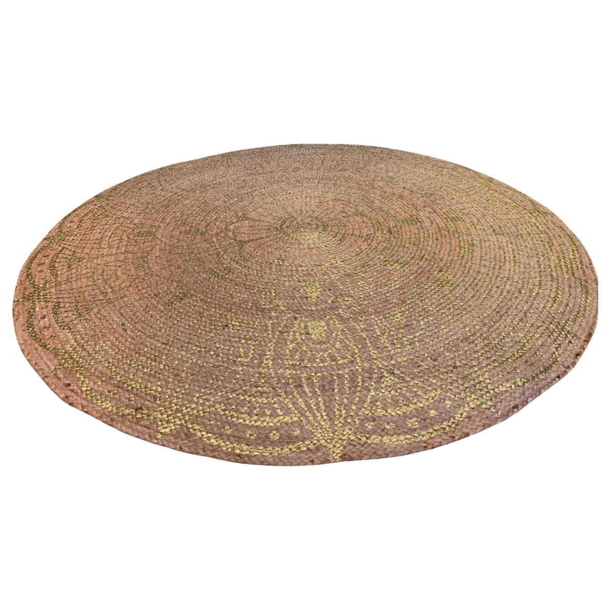 Vloerkleed jute geweven rond goud lotus print mandala ø200cm